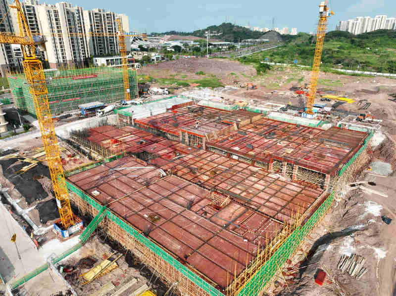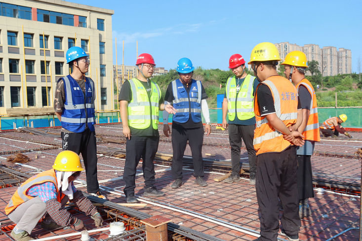 在項目建設(shè)過程中,工期短、任務(wù)重,高溫及強降雨天氣交織影響計劃節(jié)點順利推進是“卡脖子”難題。投資公司公司黨委十分重視,公司黨委委員、副總經(jīng)理、總工程師楊云峰多次赴項目部開展現(xiàn)場指導(dǎo)工作,配合甲方、監(jiān)理及過控單位制定解決方案。針對方案優(yōu)化重難點問題,項目部不等不靠,積極主動組織專業(yè)人員多次進行專題研究,依據(jù)設(shè)計圖紙及施工進度對方案進行商討明確;同時結(jié)合主體結(jié)構(gòu)工程進度,全面判定和辨識危大工程和重大危險源,對六項危大工程進行安全專項施工方案編制及專家論證,成立了農(nóng)民工夜校,在施工過程中的不同階段和時段,項目部分工種、分工序為作業(yè)人員開展專題培訓(xùn),全面筑牢企業(yè)發(fā)展的安全防線。。恰逢重慶高溫及汛期天氣交織,項目部為保障工期進度,在確保安全的前提下,辦理夜間許可證適時開展夜間施工,在工序質(zhì)量保障的前提下,全力推進施工進度。全體施工人員以熱度不減、建設(shè)正酣的干事激情持續(xù)攻堅克難、搶抓節(jié)點任務(wù)。