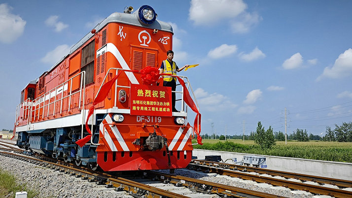 2023年8月21、22日,在喜慶響亮的鞭炮聲中,由通號電氣化局局中原公司承建的東明縣站改造線路及華汪專用線順利完成機車軋道,標志著由通號電氣化局承建的東明華汪熱力鐵路專用線工程具備通車運營條件。