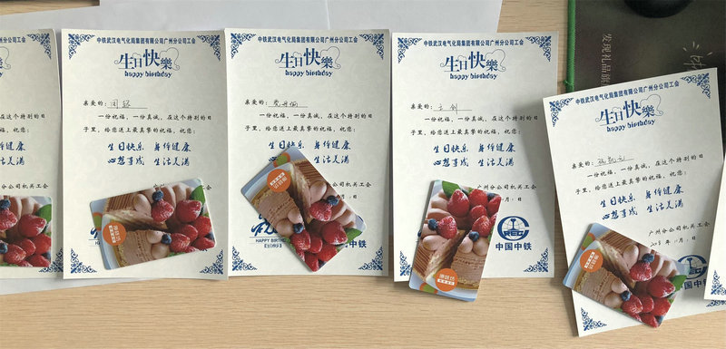 為員工贈(zèng)送生日禮品,是廣州分公司工會(huì)2015年工作的創(chuàng)新之舉,充分體現(xiàn)了公司對(duì)員工的關(guān)愛。天南海北的電氣化人,來自不同的地方,操著不同的口音;雖然有著不同的家庭背景,不同的人生經(jīng)歷;雖然從事著不同的崗位,擔(dān)任著不同的職務(wù),但是我們有一個(gè)共同的家——廣州分公司。在今后的每個(gè)月里,公司的生日禮物會(huì)陸續(xù)送到每一位同志的手里,給大家送去生日的祝福。