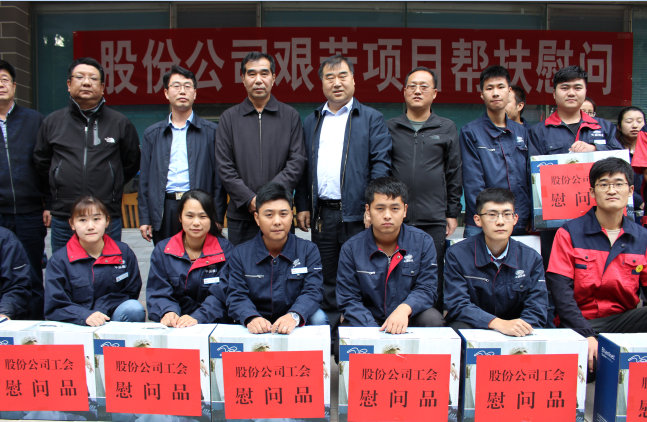 史主席一行風(fēng)塵仆仆到達(dá)項(xiàng)目部后,與項(xiàng)目部及兩個(gè)分部的職工代表一一握手并向大家問好,轉(zhuǎn)達(dá)了股份公司領(lǐng)導(dǎo)對(duì)項(xiàng)目全體干部職工的關(guān)心和問候,向大家表示誠(chéng)摯的慰問和感謝,親自給現(xiàn)場(chǎng)職工發(fā)放慰問品,并與干部職工一起合影留念。
