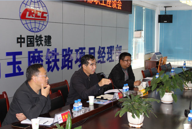 隨后,史主席在項(xiàng)目部會(huì)議室主持召開了職工座談會(huì)。會(huì)上,項(xiàng)目經(jīng)理柴穎鵬首先匯報(bào)了二十一局玉磨鐵路項(xiàng)目各項(xiàng)工作開展情況,并對(duì)“8.29”自然災(zāi)害后復(fù)工情況作了詳細(xì)匯報(bào)。史主席表示,股份公司領(lǐng)導(dǎo)高度重視艱苦偏遠(yuǎn)在建項(xiàng)目職工的生產(chǎn)生活,受股份公司領(lǐng)導(dǎo)委托特來看望慰問大家。玉磨鐵路“8.29”泥石流自然災(zāi)害后,股份公司領(lǐng)導(dǎo)一直高度關(guān)心、關(guān)注災(zāi)后恢復(fù)和隊(duì)伍士氣,特別安排對(duì)二十一局玉磨鐵路項(xiàng)目部進(jìn)行慰問,在“8.29”自然災(zāi)害中,項(xiàng)目部迅速、科學(xué)施救,較短時(shí)間就恢復(fù)了施工生產(chǎn),且隊(duì)伍精神面貌較好,與地方各級(jí)協(xié)調(diào)也很好,體現(xiàn)了你們良好的管理水平和特別能吃苦、特別能戰(zhàn)斗的工作作風(fēng)。
