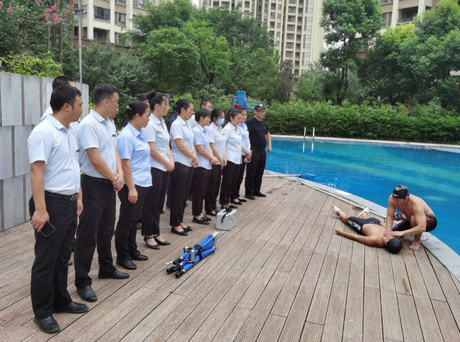 演練結(jié)束后,專業(yè)救生員在現(xiàn)場對(duì)項(xiàng)目工作人員進(jìn)行了防溺水現(xiàn)場培訓(xùn),使廣大員工能夠有效應(yīng)對(duì)游泳池突發(fā)性應(yīng)急情況,提高溺水應(yīng)急反應(yīng)能力和處置水平。