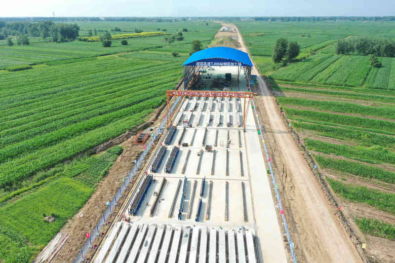 目前,宿固項目重點控制性工程新汴河特大橋、沱河大橋0#塊均已澆筑完成,開始懸澆梁懸臂段施工。全線樁基施工完成2256根,墩柱完成423根,蓋梁、臺帽完成163個,梁板預制完成367榀、已安裝44片,箱涵完成42道,土方填筑完成約186萬方......項目施工現場一片熱火朝天的繁忙景象。