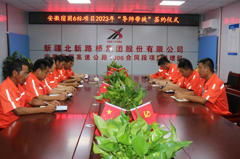 正在閱讀:北新路橋集團(tuán)長(zhǎng)沙分公司安徽宿固6標(biāo)項(xiàng)目舉行的“導(dǎo)師帶徒”活動(dòng)啟動(dòng)儀式暨簽約儀式