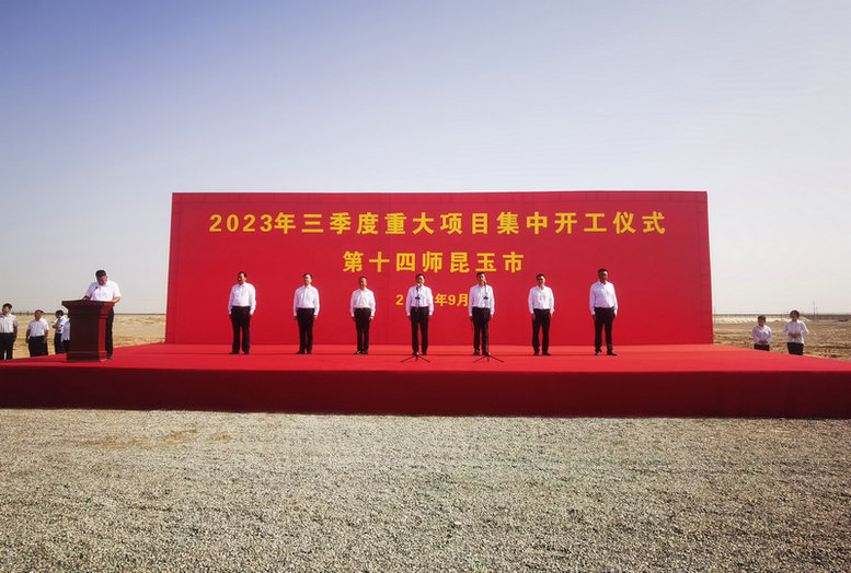 9月6日上午,新疆生產(chǎn)建設(shè)兵團(tuán)十四師昆玉市2023年三季度重大項(xiàng)目集中開工儀式在中鐵二十一局集團(tuán)承建的昆玉市公鐵聯(lián)運(yùn)樞紐工程鐵路專用線項(xiàng)目舉行。十四師昆玉市黨委書記、政委蔣欣出席開工儀式并致辭,黨委副書記、師長、昆玉市政府黨組書記買買提艾力·吐爾洪主持開工儀式,項(xiàng)目經(jīng)理趙鋒代表施工單位作表態(tài)發(fā)言。十四師昆玉市有關(guān)單位負(fù)責(zé)人及施工單位共200余人參加開工儀式。