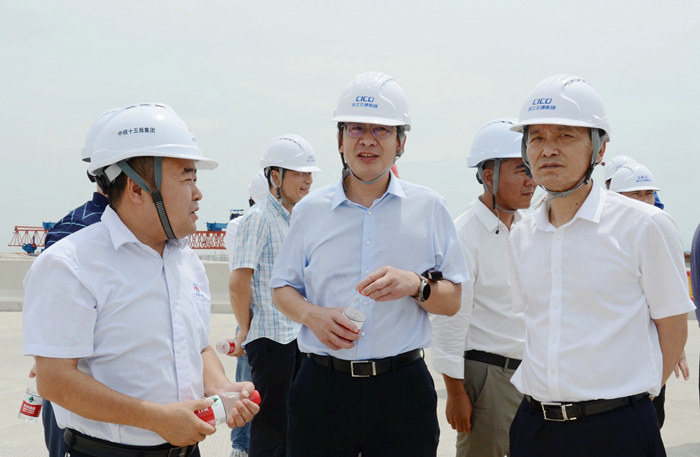 這些年輕干部從主線橋東西兩側(cè)觀看完成橋面混凝土施工的濱?;ネㄒ蛔训罉颍约罢谑┕さ脑训婪雷沧o欄,顯得很激動。他們中有的來過兩三次,有的第一次來,對這座雄偉壯觀的大橋很感興趣,詢問一些諸如高溫、寒冷、臺風(fēng)天氣及新冠肺炎疫情帶來的風(fēng)險挑戰(zhàn)等,黃偉一一作答。一位年輕女干部豎起大拇指說:“你們很了不起!”