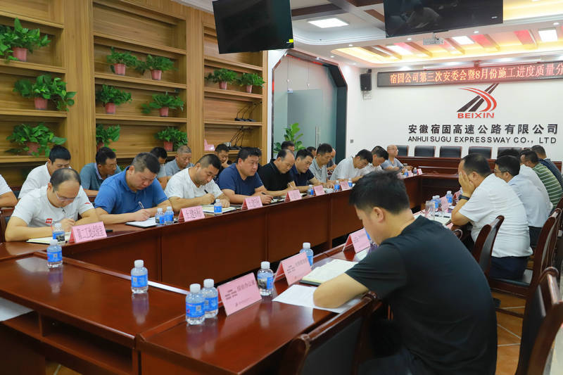 宿州訊(孫夢凱、肖霽函)9月13日上午,宿固公司召開2023年第三次安委會暨施工進度質量分析會。會上組織學習習近平總書記關于安全生產重要論述,傳達貫徹落實集團安委會安全質量工作會議的精神,要求高效率高質量完成各項重點工作,只爭朝夕抓推進,攻堅克難抓落實,確保年度目標任務完成。公司董事長張云峰出席會議并講話,黨支部副書記、總經理劉堯明主持會議。項目公司經營層及各部門負責人、各參建單位負責人等相關人員參加會議。