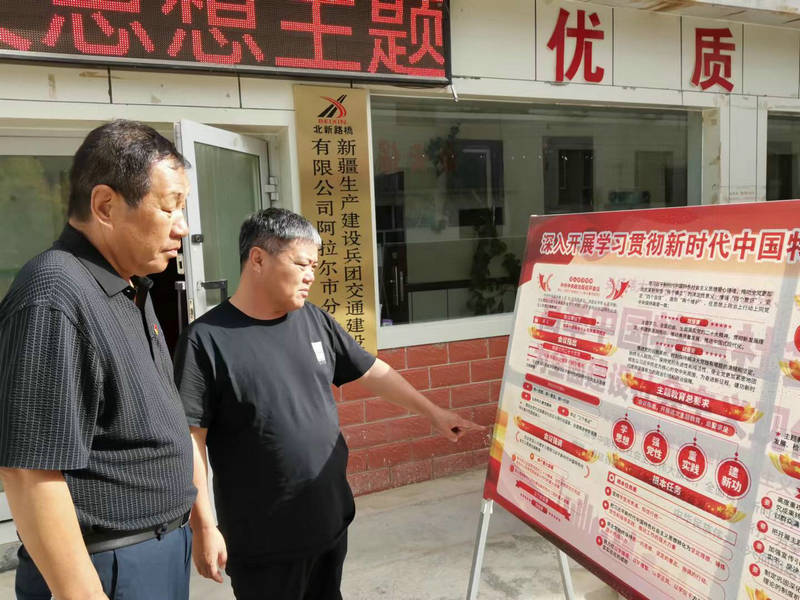 阿拉爾訊(通訊員 朱靜)學習貫徹習近平新時代中國特色社會主義思想主題教育在阿拉爾市北新交通建設科技有限公司黨支部落地生根,自八月份開展以來,按照公司黨委的精心指導下,黨支部牢牢把握“學思想、強黨性、重實踐、建新功”總要求,緊扣公司黨委目標任務,按照支部學習要求把理論學習、探究探討、檢視整改貫徹始終。