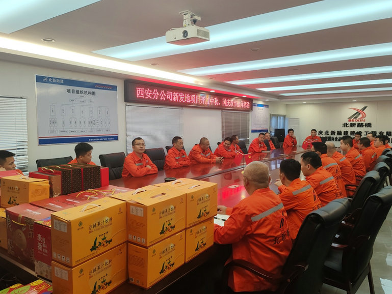 秋風(fēng)送爽,丹桂飄香。值此“中秋、國(guó)慶”雙節(jié)來(lái)臨之際,9月27日,北新路橋集團(tuán)西安分公司重慶新發(fā)地項(xiàng)目工會(huì)開(kāi)展“中秋、國(guó)慶”雙節(jié)慰問(wèn)活動(dòng),確保大家度過(guò)一個(gè)平安、歡樂(lè)、祥和的節(jié)日。