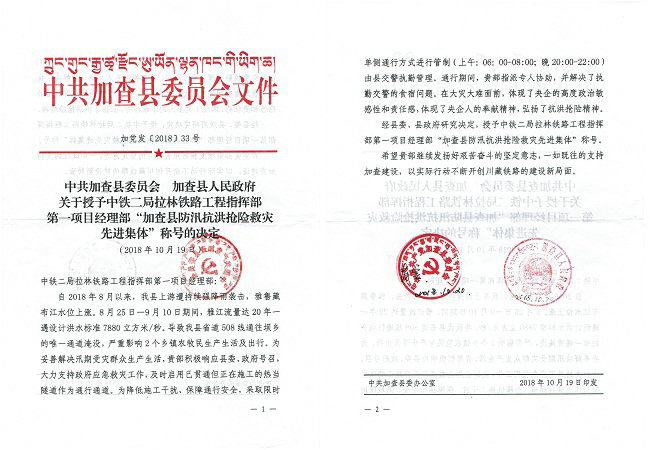 本站西藏訊(通訊員 商成湘 陳達(dá)源)近日,中鐵二局五公司拉林鐵路一項(xiàng)目獲西藏加查縣委、縣人民政府授予的“防汛抗洪搶險(xiǎn)救災(zāi)先進(jìn)集體”榮譽(yù)稱號。