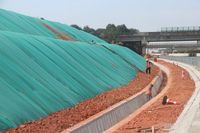 圖為:北新路橋集團(tuán)長(zhǎng)沙分公司滬昆B1標(biāo)項(xiàng)目邊坡施工照片 代光宗 攝