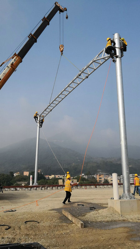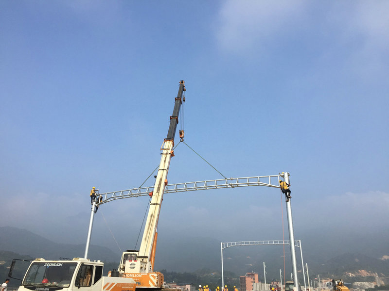 11月11日8:50時,隨著吊車吊臂平穩(wěn)落下,梅汕客專工程線第一組硬橫梁穩(wěn)穩(wěn)的落在豐順東站鋼柱上,廣州分公司梅汕電氣化項目部接觸網(wǎng)架子隊作業(yè)人員,對位、連接、緊固、落臂等嫻熟的操作下,順利完成了梅汕首組接觸網(wǎng)硬橫梁架設(shè)。至此,由中鐵武漢電氣化局廣州分公司梅汕電氣化項目部承建的新建梅汕鐵路“四電”集成工程接觸網(wǎng)施工進(jìn)入上部安裝階段。