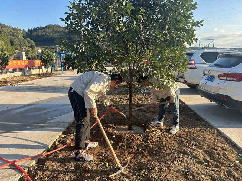 在項目駐地建好搬家那天,第一批前往的員工,誰也不會忘記乘車駛?cè)腭v地便道時的景象。房屋背山而建,坐落規(guī)整,湛藍的天空下,“三旗”迎風(fēng)飄揚,一片蔥郁撲面襲來。移動式花架點綠駐地里的每一個角落;圍墻、操場四周種滿了茶樹、桂花樹,宿舍區(qū)植滿小草,駐地里一片盎然生機;“分片式”綠化格局,與背后大山上的青松翠柏遙相呼應(yīng),盡顯生活和自然之美。