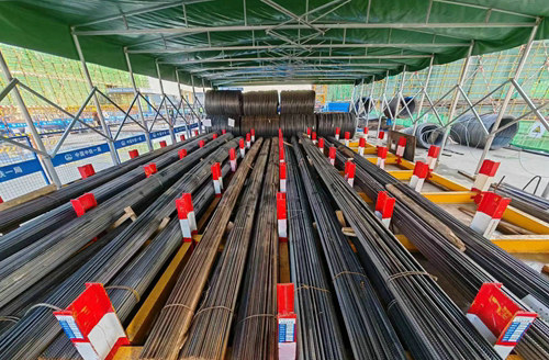 項目部鋼筋堆放區(qū)整齊劃一