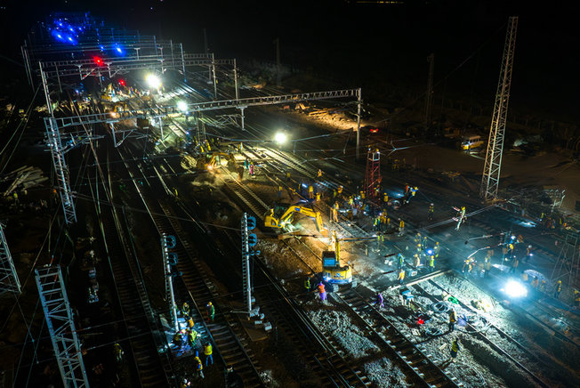 自去年12月進場以來,中鐵二十一局全體參建人員積極應對營業(yè)線施工安全壓力大、工期緊迫、任務繁重、環(huán)境惡劣等不利因素,大力開展“保安全 鑄精品 促發(fā)展”勞動競賽,克服鄰線行車密度高、多專業(yè)交叉施工、施工組織復雜、地處風區(qū)大風干擾多等重重困難,并利用600多次“封閉點”天窗作業(yè),攻克了精河站、博樂東站新聯(lián)鎖開通等重點控制性工程,于今年7月13日開始正線鋪軌,10月24日開始第一區(qū)間靜態(tài)驗收,11月16日博樂東至阿拉山口段區(qū)間順利開通,用9個月完成了施工任務,線路各項參數(shù)符合國鐵Ⅰ級鐵路行車標準,達到了交付運營條件。