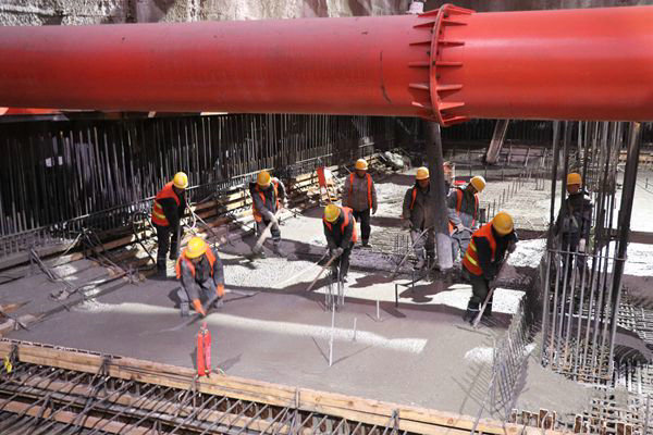 第一流水段長22.5米,基坑寬21.7米,距起始里程5米處還有一個(gè)長9米,寬3.35米,高2.39米的廢水池。經(jīng)過項(xiàng)目部全體員工和主體隊(duì)伍的共同努力,環(huán)島第一流水段終于具備了澆筑混凝土的條件。并于11月11日下午14:30準(zhǔn)時(shí)開始澆筑,在澆筑工程中,全體參戰(zhàn)人員發(fā)揚(yáng)鐵軍精神,克服夜間施工、天氣寒冷等多種困難,員工們沒有一絲絲怨言。