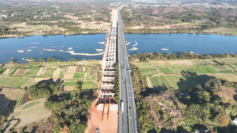 日前,北新路橋集團(tuán)長(zhǎng)沙分公司滬昆B1標(biāo)項(xiàng)目胡家榨大橋正在施工,孫鵬攝 (2)