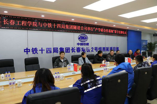 中國(guó)鐵路工程建設(shè)網(wǎng)訊(通訊員 王福生 報(bào)道)11月14日上午,中鐵十四局集團(tuán)隧道公司長(zhǎng)春地鐵2號(hào)線西延項(xiàng)目部與長(zhǎng)春工程學(xué)院舉行 “產(chǎn)學(xué)研合作基地”簽字掛牌儀式