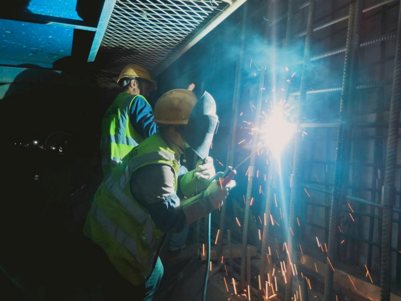 在中梁山隧道二、三工區(qū)深隧內(nèi),燈光焊花交織在一起,機器聲號子聲匯集在一起,各道施工工序銜接有序,一派熱火朝天的施工景象。隧道外低溫離不開棉衣,隧道內(nèi)潮濕悶熱汗流浹背,員工們有的綁扎鋼筋、有的操控設(shè)備,各道工序有條不紊地加緊施工。截止目前,中梁山隧道進口大小里程正線掘進1933米、中梁山出口大小里程正線掘進1023米。