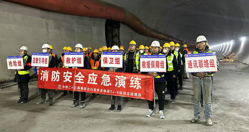 2023年12月30日,中鐵二十三局集團沈白高鐵項目部,年終歲尾,不搞跨年、搞演練,在建設中的東山隧道1#斜井開展隧道火災逃生疏散應急實戰(zhàn)演練活動。旨在提升參建人員“防范勝于救災”意識和應對突發(fā)火災事件的應急處置能力。