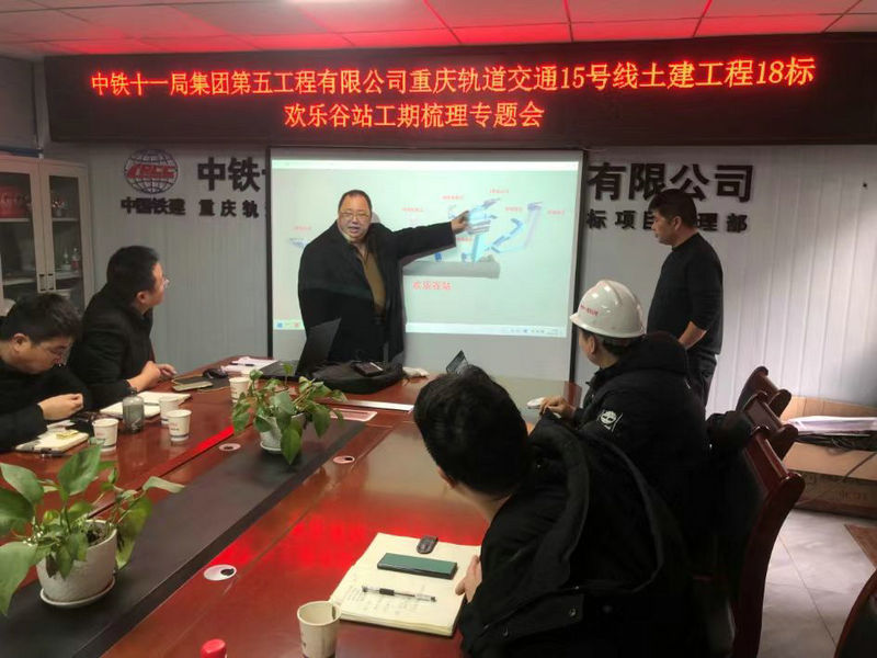 1月22日上午,中鐵建重慶軌道交通15號(hào)線二期總承包部指揮長(zhǎng)李兵到歡樂(lè)谷站現(xiàn)場(chǎng)組織召開(kāi)統(tǒng)籌盾構(gòu)過(guò)站、區(qū)間貫通和車(chē)站附屬施工工期梳理專(zhuān)題會(huì)議,總承包部副指揮長(zhǎng)陳華富、總承包部工程管理部、18標(biāo)項(xiàng)目經(jīng)理趙建偉、盾構(gòu)總體負(fù)責(zé)人張建平、總工程師王賓、機(jī)電總工程師王磊和施工班組負(fù)責(zé)人等相關(guān)人員參加。
