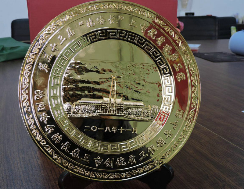 圖為長春地鐵2號線一期工程獲評第33屆“沈哈長”三市優(yōu)質(zhì)觀摩工程獎獎牌