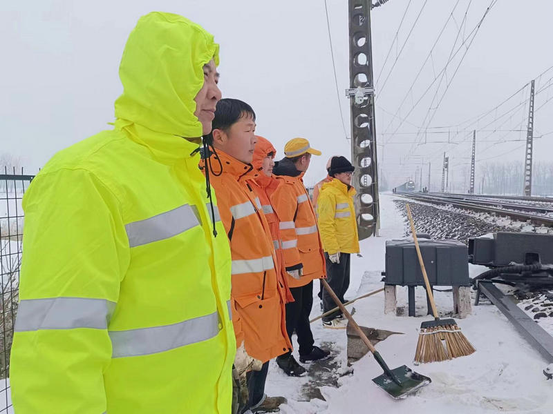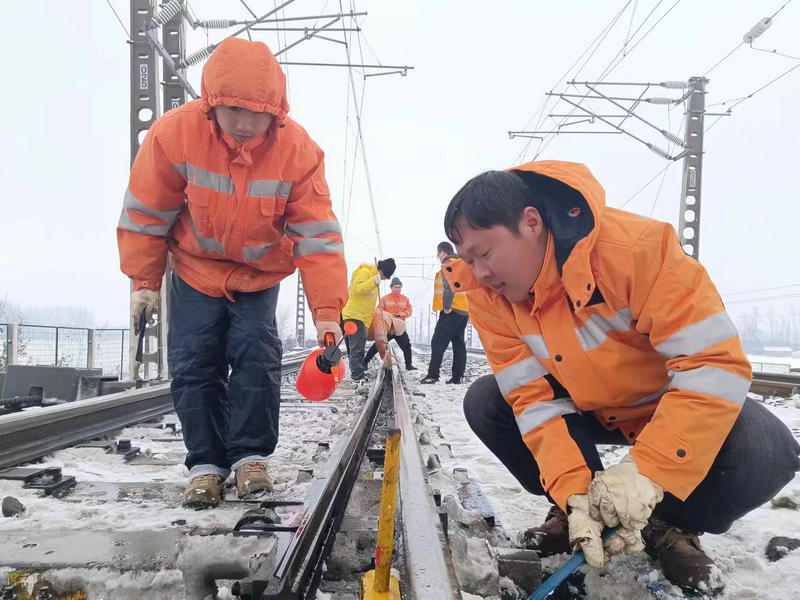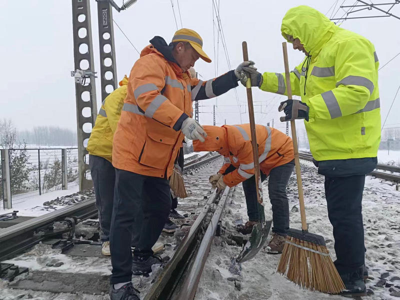 近日,皖北地區(qū)普降大雪,飄舞的雪花給大地披上了銀裝素裹的美景,也給鐵路安全暢通帶來了嚴(yán)峻的考驗(yàn)。中國鐵路上海局集團(tuán)有限公司合肥電務(wù)段亳州電務(wù)車間“以雪為令”,迅速啟動(dòng)掃雪應(yīng)急預(yù)案,組織車間全體干部職工全員在崗,準(zhǔn)備充足的扁鏟、掃把、防凍液等防寒物品,按照掃雪預(yù)案分工深入管內(nèi)各站開展進(jìn)行掃雪除冰突擊奮戰(zhàn)。大家頂風(fēng)冒雪,不畏嚴(yán)寒,全力以赴做好掃雪除冰,確保車間管內(nèi)道岔轉(zhuǎn)換良好,確保京九線列車安全暢通運(yùn)行。