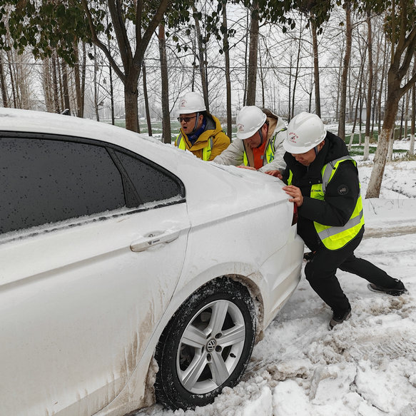 受降雪和路面結(jié)冰影響,宿州大道、G343國道積雪結(jié)冰,多輛汽車因積雪打滑無法前行,救援人員拿起鐵鍬助力推車,幫助過路司機(jī)從積雪中解困。人群中響起陣陣掌聲,“你們來得太及時了!”“北新路橋好樣的!”“謝謝你們!”