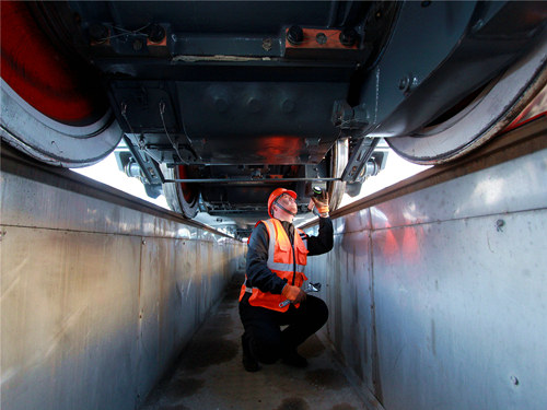 “雖然氣溫回暖,但內(nèi)蒙的冬季氣候條件仍舊對(duì)機(jī)車的走行各部產(chǎn)生重要影響,并且低溫會(huì)導(dǎo)致金屬部件收縮、尺寸發(fā)生變化。此外,走行部的結(jié)構(gòu)復(fù)雜,涉及多個(gè)部件,任何一處出現(xiàn)故障都可能影響到整個(gè)機(jī)車的安全運(yùn)行,節(jié)后的全面‘會(huì)診’尤為重要”,當(dāng)天,分公司檢修車間主任許剛介紹道。