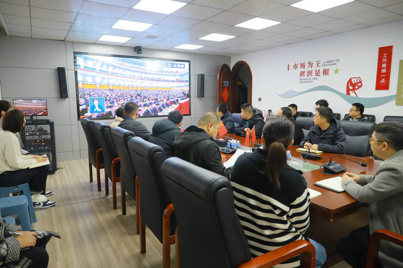 8:40分大屏幕提前接通設(shè)備,同志們懷著激動(dòng)的心情等待大會(huì)開幕。隨著大會(huì)開幕,收看直播的同志們?nèi)w起立,高唱國歌。全場(chǎng)同志全程認(rèn)真聆聽、深入學(xué)習(xí)領(lǐng)會(huì)。當(dāng)國務(wù)院總理李強(qiáng)作政府工作報(bào)告結(jié)束時(shí),同志們也隨著現(xiàn)場(chǎng)代表們一起長時(shí)間熱烈鼓掌,表達(dá)對(duì)這次團(tuán)結(jié)、勝利、奮進(jìn)的空前盛會(huì)的祝賀,表達(dá)對(duì)黨中央的高度信賴、堅(jiān)決擁護(hù)和衷心愛戴。