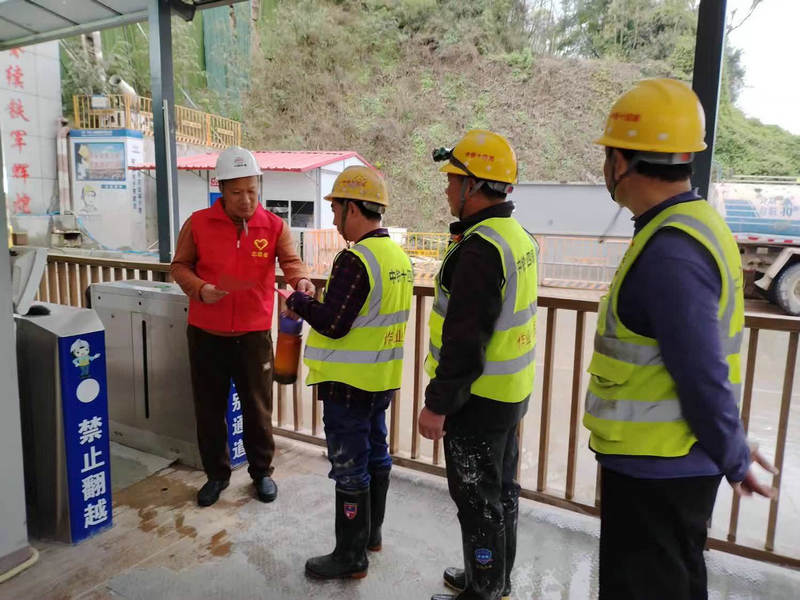 項(xiàng)目部學(xué)雷鋒志愿者為進(jìn)入隧道施工員工發(fā)放安全、質(zhì)量、環(huán)保宣傳傳單