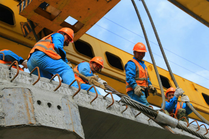 面對架梁難度大,危險性高,天氣復(fù)雜多變等諸多不良因素,項目部不等不靠,主動出擊,積極商量對策,在施工生產(chǎn)中以“安全保質(zhì)量,安全促生產(chǎn)”為方針?biāo)枷?,牢固?zhí)行安全紅線管理制度,貫徹落實勞動競賽活動文件精神,全面確保了的各項施工任務(wù)有序推行。