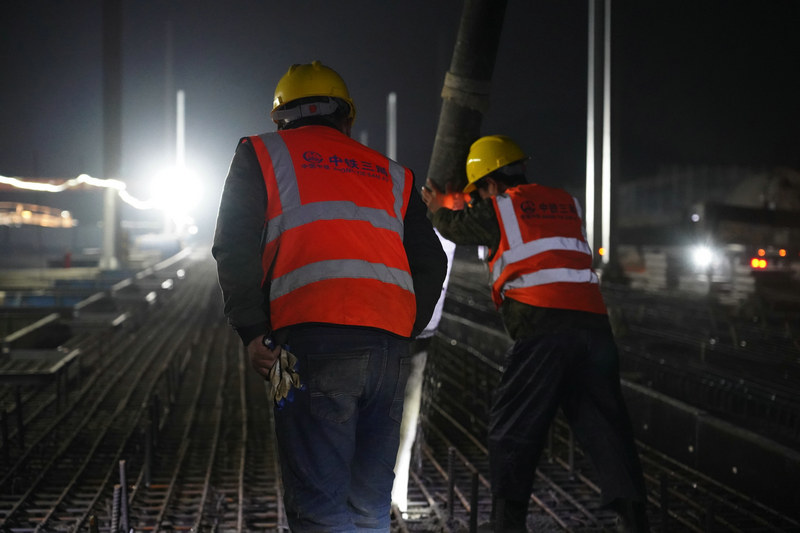 高速鐵路無砟道岔主要是列車轉線的重要設備,具有精度高、施工難度大的特點,本次完成澆筑的楊家塝線路所2#道岔為全線的首件工程,項目部積極組織策劃嚴格把控落實日進度指標,對施工任務統(tǒng)籌調度、細化分工,現(xiàn)場設置專人盯控施工進度,設備、人員、儀器緊密銜接,保障無砟道岔施工有序進行。(毛江 王薪雅)