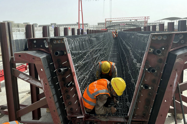 本次完成澆筑的首片預(yù)制箱梁長30米,高1.6米?,F(xiàn)場負(fù)責(zé)人表示,為確保首片預(yù)制梁順利澆筑完成,中鐵二十一局項(xiàng)目部精心組織安排,在預(yù)制過程中加強(qiáng)質(zhì)量控制,確保梁體澆筑安全優(yōu)質(zhì)。首片預(yù)制梁成功澆筑,為橋體上部結(jié)構(gòu)施工快速推進(jìn)提供了保障。