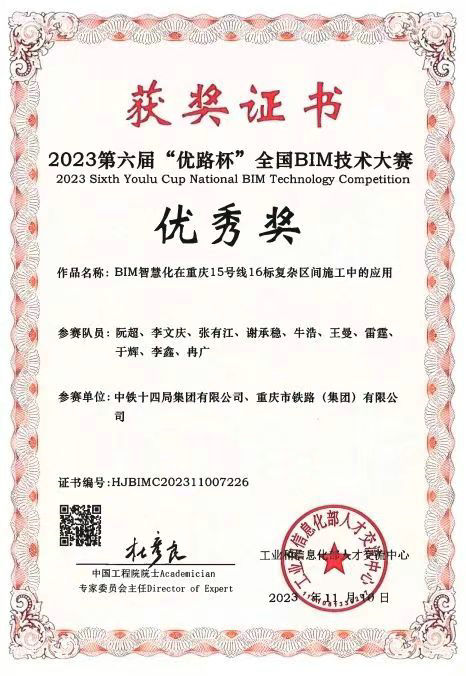 榮獲2023第六屆“優(yōu)路杯”全國(guó)BIM技術(shù)大賽優(yōu)秀獎(jiǎng)
