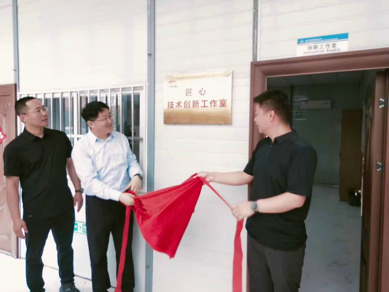 公司副總經(jīng)理兼總工程師李洪江(右)為“匠心技術(shù)創(chuàng)新工作室”揭牌