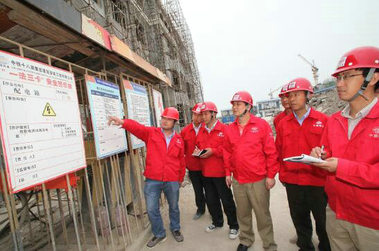 5、中鐵十八局集團(tuán)建安公司副總經(jīng)理張曉鵬(左四)、北疆電廠項目經(jīng)理鞠正平(右二)、遵化項目經(jīng)理李緯(右一)等在現(xiàn)場辦公(曾海波 伍振 攝)