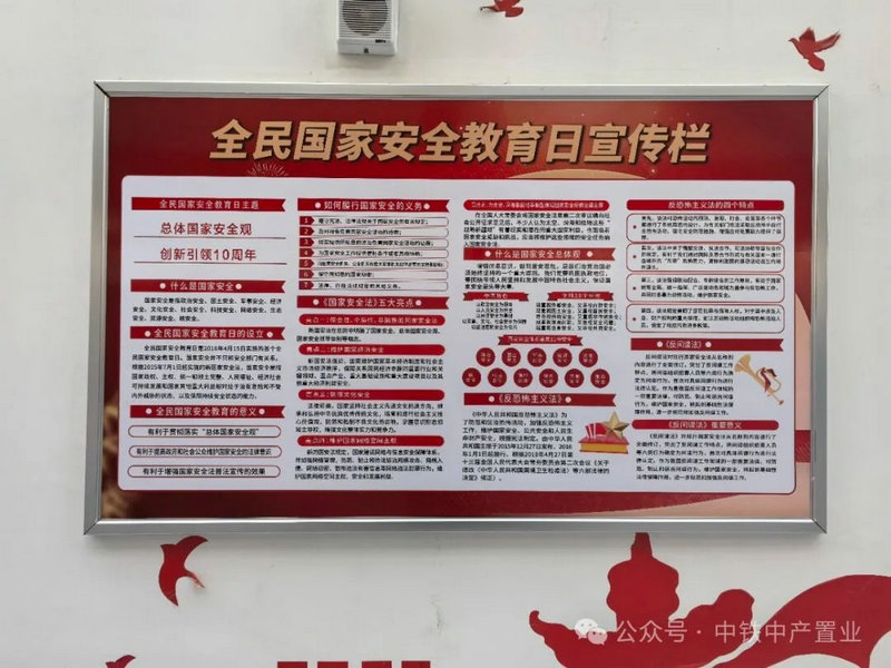 國家安全是頭等大事。2024年4月15日是第九個(gè)全民國家安全教育日,主題為“總體國家安全觀·創(chuàng)新引領(lǐng)10周年”。為深入貫徹落實(shí)習(xí)近平總書記關(guān)于全面加強(qiáng)國家安全教育重要指示批示精神,中產(chǎn)置業(yè)公司開展了“4·15”全民國家安全教育日宣傳活動(dòng)。在泰和里商業(yè)街電子顯示屏投放海報(bào)、辦公區(qū)域制作展板,廣泛宣傳總體國家安全觀核心要義、國家安全包括哪些領(lǐng)域、日常生活中應(yīng)警惕哪些危害國家安全的活動(dòng)等內(nèi)容,營造良好教育氛圍,引導(dǎo)全體黨員干部職工牢固樹立國家安全意識(shí),心懷“國之大者”、心存國家大義、心系國家安全。