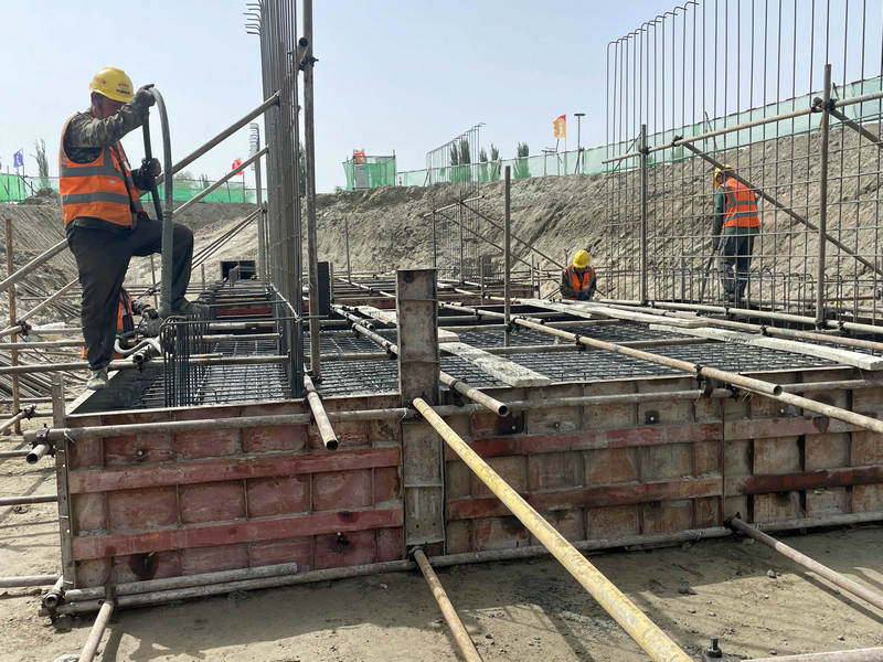 4月24日,經(jīng)過5個小時連續(xù)澆筑混凝土153.4方,由中鐵二十一局承建的G3036阿克蘇至阿拉爾高速公路第三合同段首座涵洞基礎(chǔ)混凝土澆筑施工順利完成。
