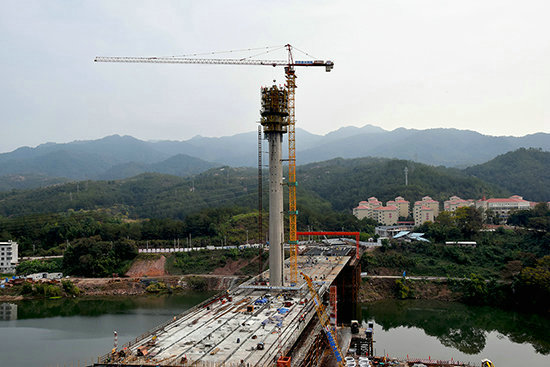 中鐵建大橋工程局一公司上杭潭頭大橋主塔順利封頂
