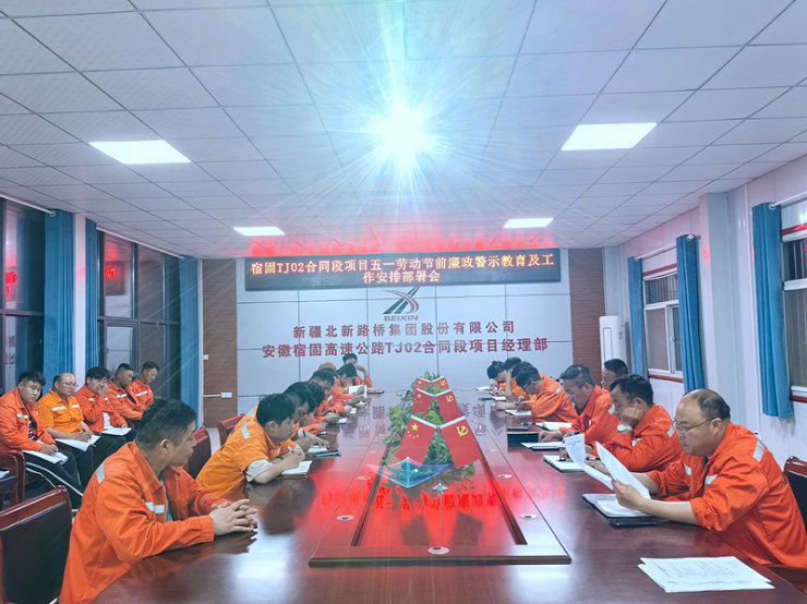 宿州訊(通訊員 劉繼紅)為深入貫徹落實(shí)黨的二十大精神和習(xí)近平總書記關(guān)于加強(qiáng)作風(fēng)建設(shè)重要指示批示精神,持續(xù)筑牢黨員干部拒腐防變思想防線,營造廉潔文明、風(fēng)清氣正的節(jié)日氛圍。4月29日,北新路橋集團(tuán)兵團(tuán)交建公司安徽宿固TJ02合同段項(xiàng)目召開“五一勞動(dòng)節(jié)”節(jié)前廉政警示教育會(huì)議,項(xiàng)目部全體職工參加會(huì)議。