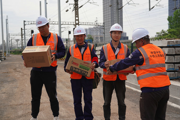 五分公司工會(huì)為了表達(dá)對(duì)一線(xiàn)工作人員的關(guān)懷與尊重,特意前往宜興項(xiàng)目的三個(gè)關(guān)鍵施工現(xiàn)場(chǎng),它們分別是宜昌東站改施工項(xiàng)目、楊家塝線(xiàn)路所42號(hào)施工點(diǎn)以及閔家沖至楊家塝線(xiàn)路所區(qū)間豐寶隧道至丁家塝隧道路基施工現(xiàn)場(chǎng)。在這三個(gè)具有不同施工難度和挑戰(zhàn)性的工作區(qū)域,工會(huì)成員將清涼解渴的礦泉水、提神醒腦的加多寶涼茶、速食產(chǎn)品方便面和火腿腸等物資,送到每位辛勤付出的員工手中。