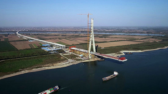 圖四、棋盤洲長江大橋施工(王成龍攝);