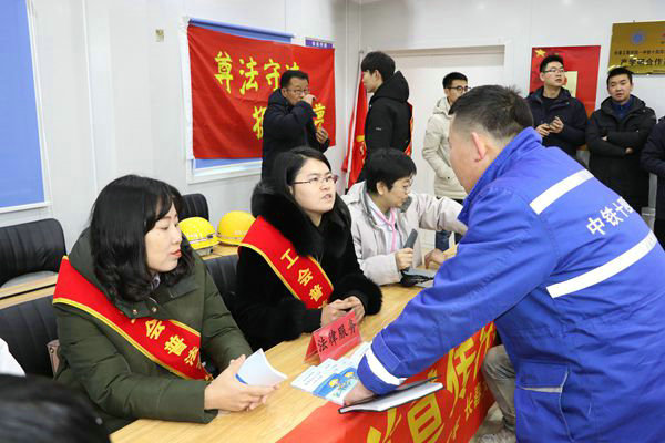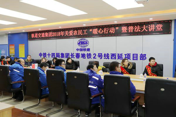 中國鐵路工程建設(shè)網(wǎng)訊(通訊員 王福生 報道)為增強(qiáng)農(nóng)民工的維權(quán)意識和企業(yè)知法守法意識,確保農(nóng)民工的合法權(quán)益不受侵犯,12月14日,長春市軌道交通集團(tuán)在地鐵2號線西延線項(xiàng)目部舉行2018年關(guān)愛農(nóng)民工“暖心行動”暨普法大講堂活動,中鐵十四局集團(tuán)和中慶建設(shè)集團(tuán)等單位60多人參加了活動,會議由市軌道交通集團(tuán)工會副主席王南主持。