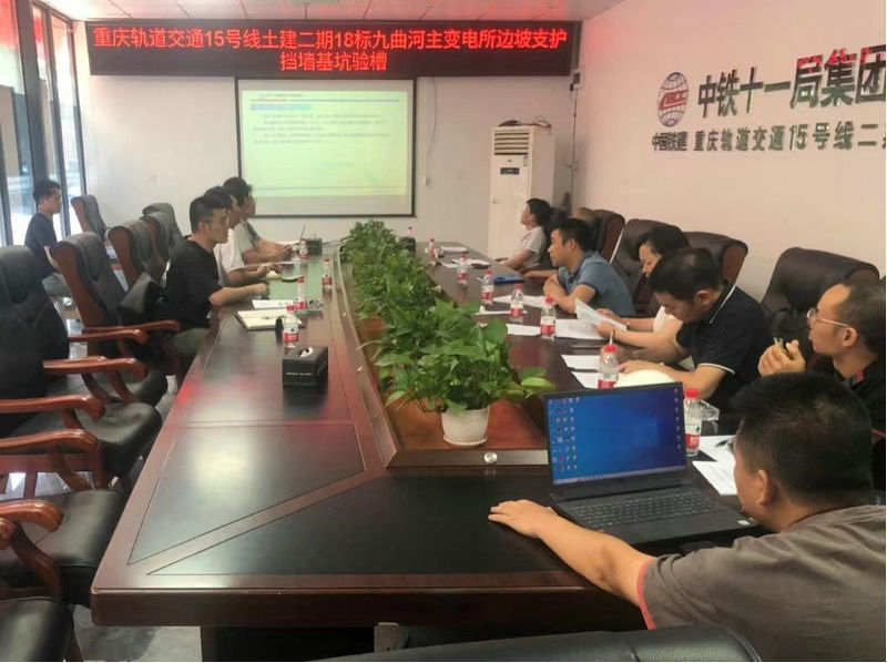 5月24日下午,中鐵建重慶軌道交通15號(hào)線二期土建工程總承包部18標(biāo)項(xiàng)目部組織建設(shè)單位、勘察單位、設(shè)計(jì)單位、監(jiān)理單位、質(zhì)量檢測(cè)單位、第三方測(cè)量單位、第三方監(jiān)控量測(cè)單位、總承包單位以及施工單位召開(kāi)九曲河主變電所邊坡支護(hù)重力式擋墻基坑基底驗(yàn)槽會(huì)議。建設(shè)單位結(jié)合驗(yàn)收小組現(xiàn)場(chǎng)踏勘情況、資料核查情況及各單位意見(jiàn),確認(rèn)基底驗(yàn)槽順利通過(guò),準(zhǔn)予進(jìn)入重力式擋墻墻身施工階段。