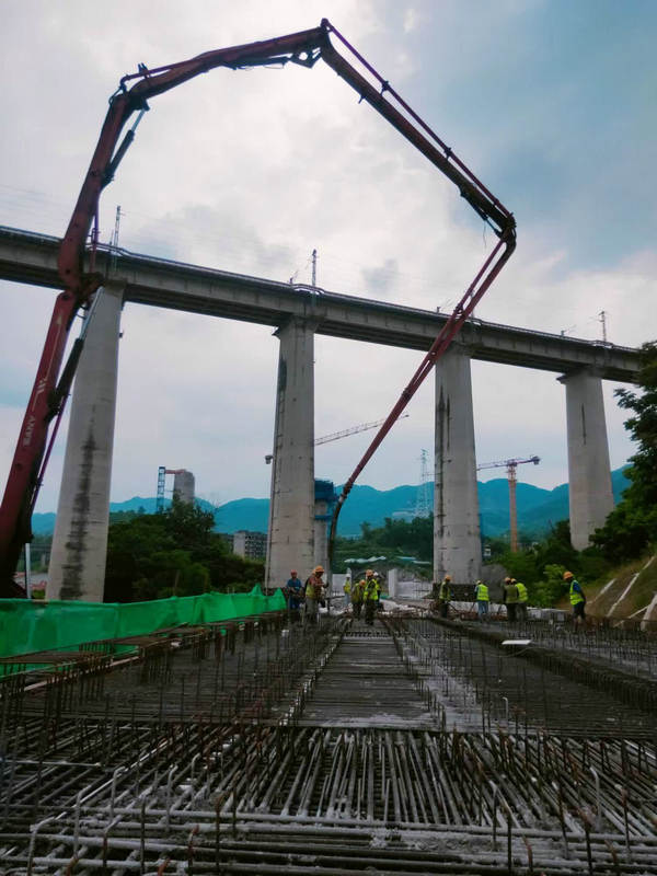 施工過程中,項(xiàng)目部按照業(yè)主和上級(jí)單位節(jié)點(diǎn)工期要求,推行精細(xì)化管理,嚴(yán)把施工方案關(guān),技術(shù)交底、安全和質(zhì)量把控全覆蓋,嚴(yán)格控制高空吊裝程序、混凝土澆筑厚度及澆筑速率,并加強(qiáng)振搗確保墩臺(tái)和梁體密實(shí)度100%合格,最終圓滿完成該橋墩臺(tái)和現(xiàn)澆梁的澆筑任務(wù)。