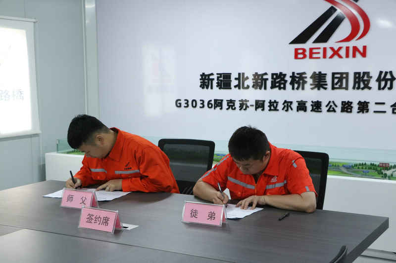 會上宣讀了《兵團交建公司“導師帶徒”培訓制度(試行)》,并匯報師徒結對情況;4對師徒代表現(xiàn)場簽訂了“導師帶徒”協(xié)議,導師代表、徒弟代表分別作交流發(fā)言。