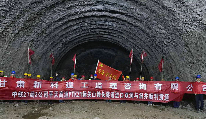 平天高速PTKZ1標(biāo)關(guān)山特長(zhǎng)隧道進(jìn)口雙洞與斜井順利貫通
