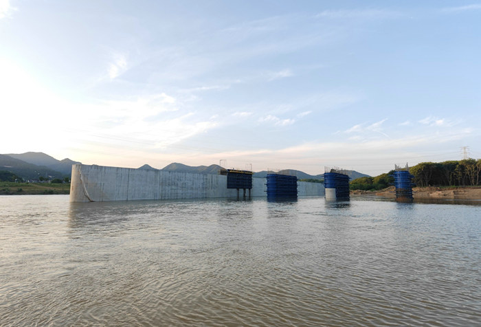 佇立于常山江的導(dǎo)流墻與閘墩 呂奎元攝