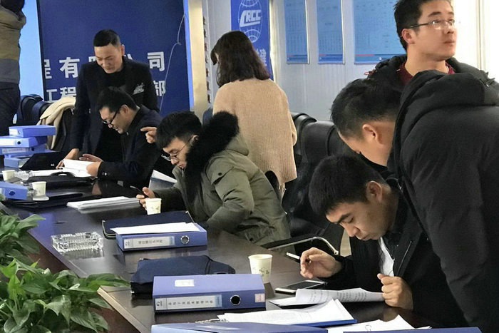 圖為檢查人員詳細(xì)查看內(nèi)業(yè)資料